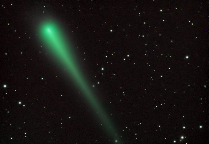 La foto fue tomada desde las afueras de Granada el 1 de noviembre poco antes de la madrugada. Es el resultado de un total de 1.5h de exposición y el color verde es debido a la composición de los gases emitidos por el nucleo, cianógeno y carbono biatómico.