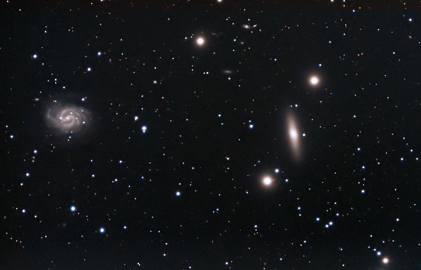 3 - En la constelación de Virgo se encuentra una zona muy rica de galaxias. En la foto aparecen la NGC4526 y la NGC4535, también conocida como "la Galaxia perdida". Es una galaxia espiral barrada, que (gracias al estudio de sus cefeidas, realizado con ayuda del Telescopio Espacial Hubble) se sabe se halla a una distancia de 50 millones de años luz de la Vía Láctea, perteneciendo al Cúmulo de Virgo, y siendo una de las mayores galaxias de dicho cúmulo.